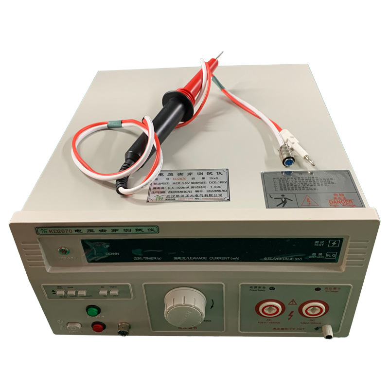 KD2670J電壓擊穿測(cè)試儀根據(jù)其作用可稱為電氣絕緣強(qiáng)度試驗(yàn)儀、介質(zhì)強(qiáng)度測(cè)試儀等。