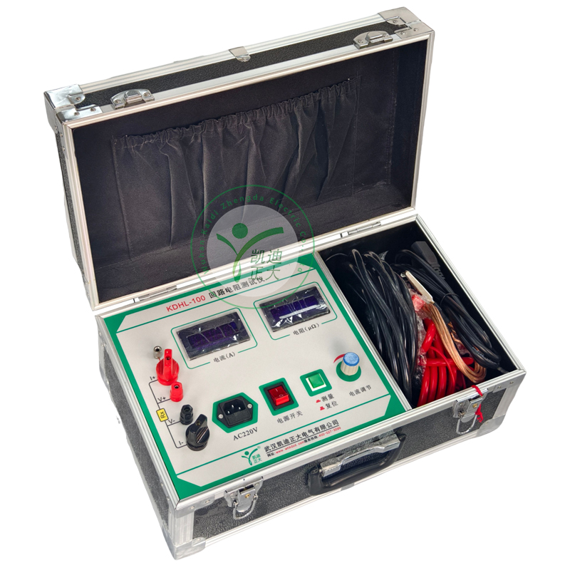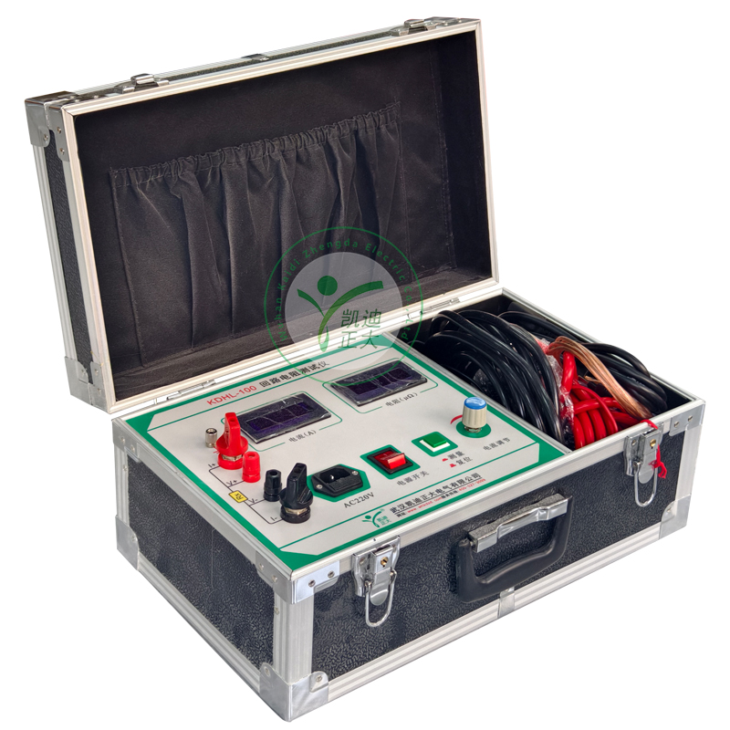 KDHL-100回路電阻測試儀是采用數(shù)字電路技術(shù)和開關(guān)電源技術(shù)相結(jié)合設(shè)計而成。它適用于開關(guān)控制設(shè)備的接觸電阻、回路電阻的測量。其測試電流采用國家標準推薦的直流100A。可在電流100A的情況下直接測得回路電阻和接觸電阻,并用數(shù)字顯示出來。該儀器測量準確、性能穩(wěn)定,適合電力、供電部門現(xiàn)場高壓開關(guān)維修和高壓開關(guān)廠回路電阻測試得要求。