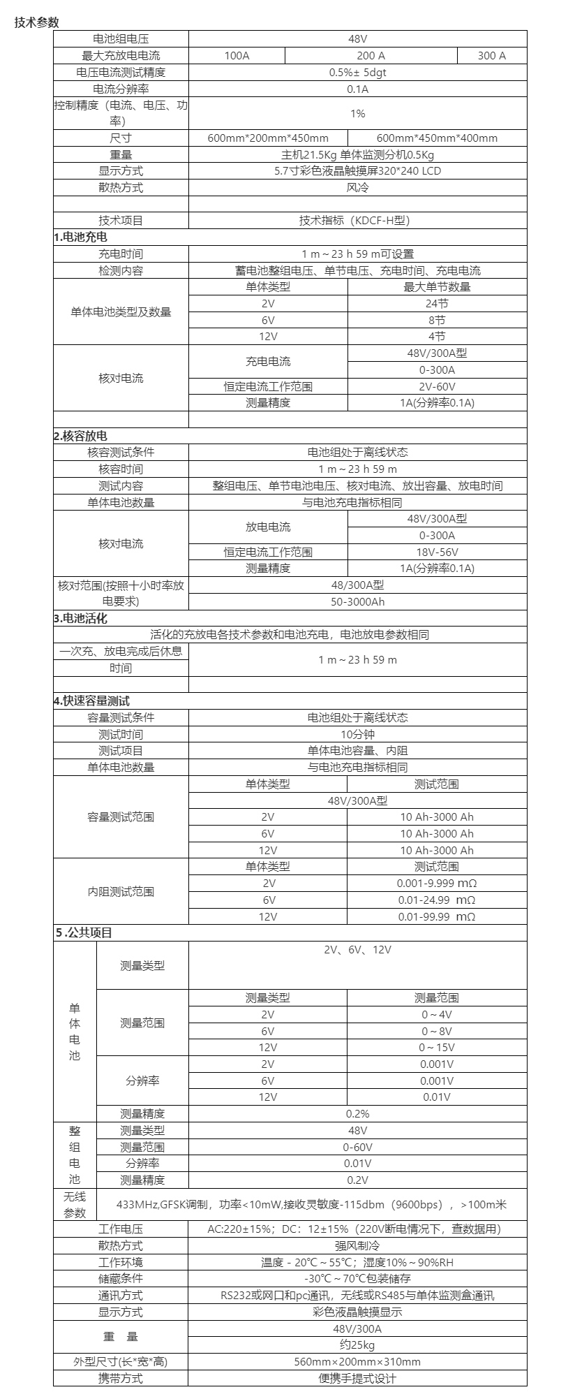 1.可對(duì)整組電池進(jìn)行充電、放電、活化、在線監(jiān)測(cè)、快速核容;