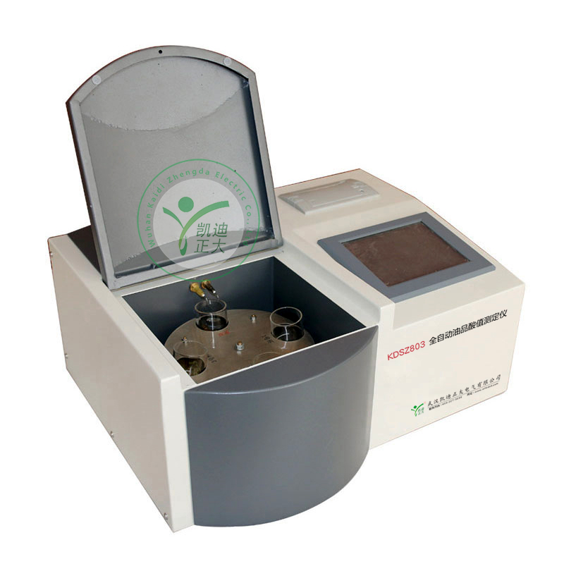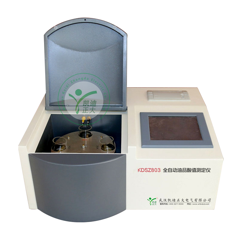 KDSZ-803D全自動油品酸值測定儀采用中和法原理,于常溫狀態(tài)下,微機控制自動完成加液、攪拌、滴定及終點判斷。采用觸摸式液晶屏選擇所有工作參數(shù),人機對話界面簡潔友好,操作方便,油樣平均分析周期為2分鐘左右??煞謩e顯示多至35組的測定結(jié)果,并可打印輸出多項與測定相關(guān)的參數(shù)。