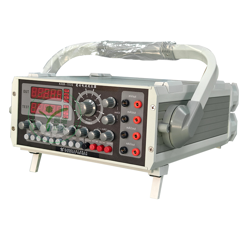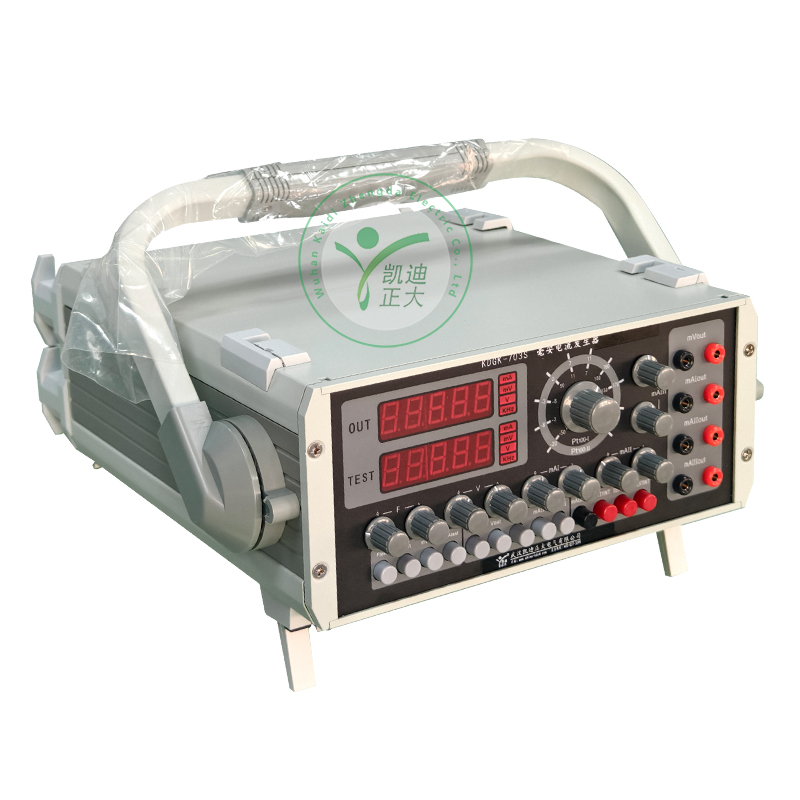 KDGK-703S便攜式綜合校驗儀(毫安發(fā)生器)是一種集數(shù)顯式電壓、電流、頻率標(biāo)準(zhǔn)信號源、Pt100 鉑電阻溫度模擬標(biāo)準(zhǔn)信號源、數(shù)字式電壓、電流、頻率測量功能于一體的高精度、高分辨率、多用途的自動化儀表校準(zhǔn)儀器。