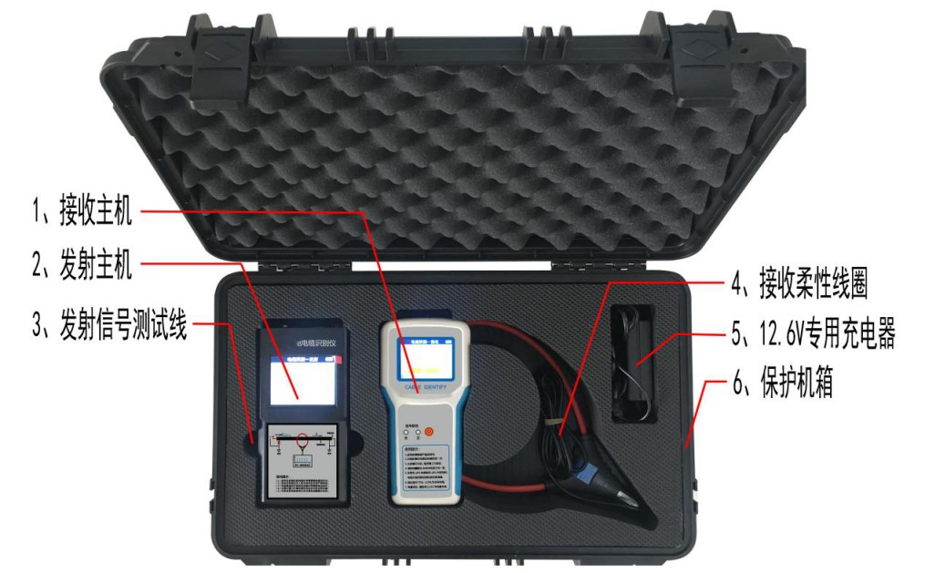 2、該電纜識別儀與常規(guī)的識別儀不同,采用了最新的通信技術(shù),在發(fā)射端采用單片機技術(shù)對發(fā)射信號進行編碼、功率驅(qū)動,將信號耦合到電纜上;接收機中的單片機對接收的相位編碼信號解碼和相位識別。根據(jù)目標(biāo)電纜上的信號相位特征的少有性將目標(biāo)電纜從一大束電纜中識別出來。因此工作性能可靠,對超長電纜也能做到準(zhǔn)確判別,是一種輕小型、緊湊型、便攜式儀器。適用于各種類型的高低壓動力電纜。