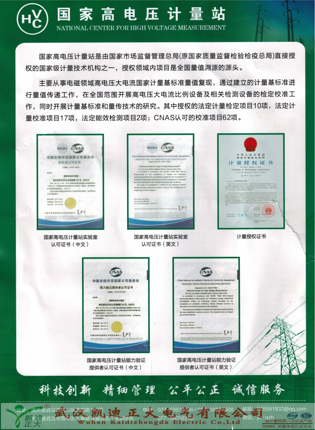 國家高電壓計量站是由國家市場監(jiān)督管理總局(原國家質(zhì)量監(jiān)督檢驗檢疫總局)直接授權(quán)的計量技術(shù)機構(gòu)之一,授權(quán)領(lǐng)域項目是全國量值溯源的源頭。