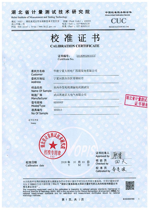 通過《直流數(shù)字電流表試行檢定規(guī)程》(JJG 598-1989)《泄漏電流測量儀(表)檢定規(guī)程》(JJG 843-1993),武漢凱迪正大電氣有限公司生產(chǎn)的水內(nèi)冷發(fā)電機泄漏電流測試儀:輸出電壓:80KV輸出電流:300mA輸出功率:24KW符合國家電力試驗標準,精度符合國家能源局發(fā)電機水內(nèi)冷耐壓試驗需求。