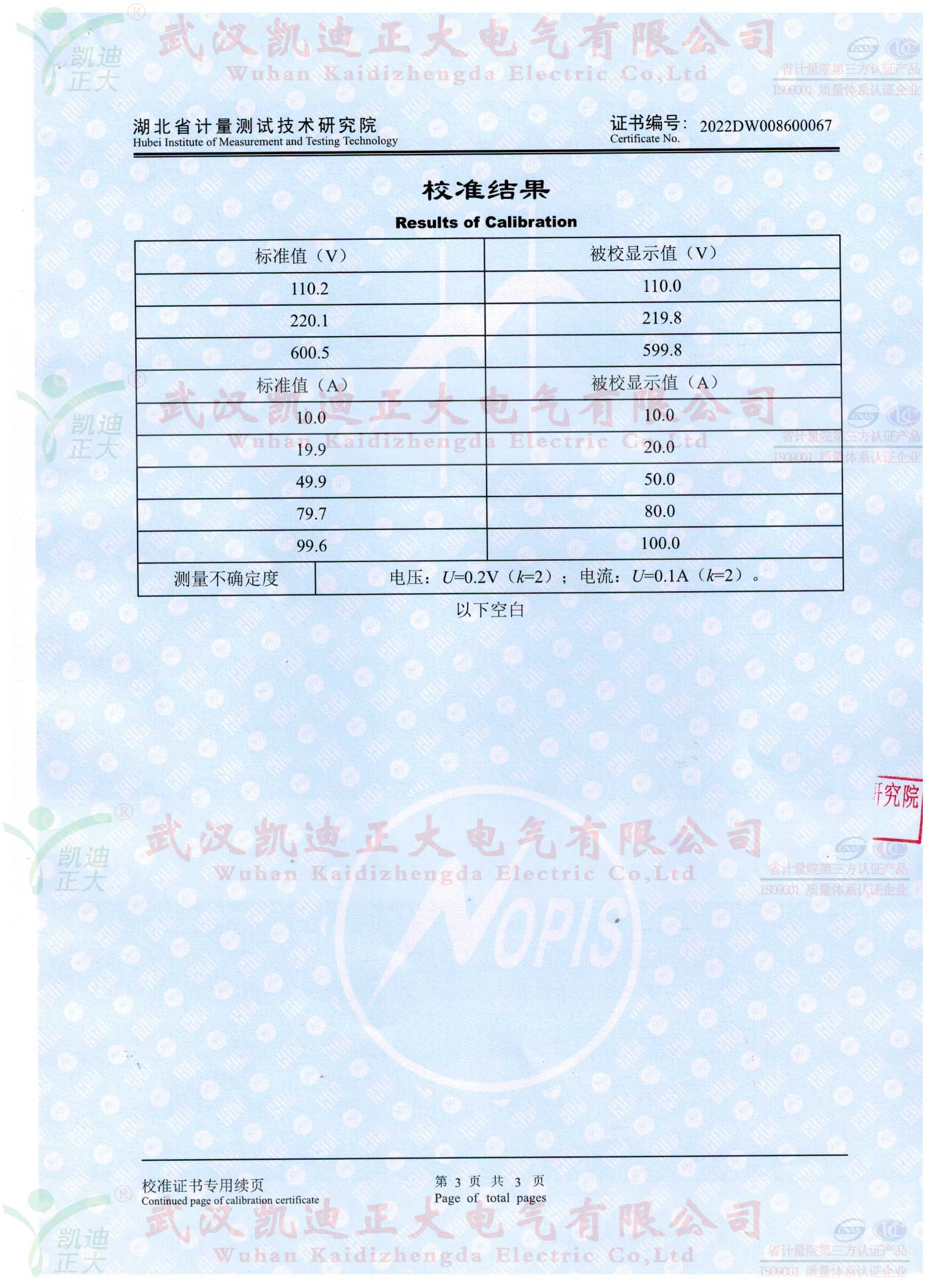 生產(chǎn)KDZD886完成后,送往省計量院。在校準(zhǔn)證書顯示:采用國家高電壓計量站(計)字第2021015336號溯源機(jī)構(gòu)的高精度電流傳感器及數(shù)字多用表檢定電壓示值誤差U=0.2V;電流值U=0.1A的結(jié)果值,符合國家相關(guān)標(biāo)準(zhǔn),滿足測量不確定度。