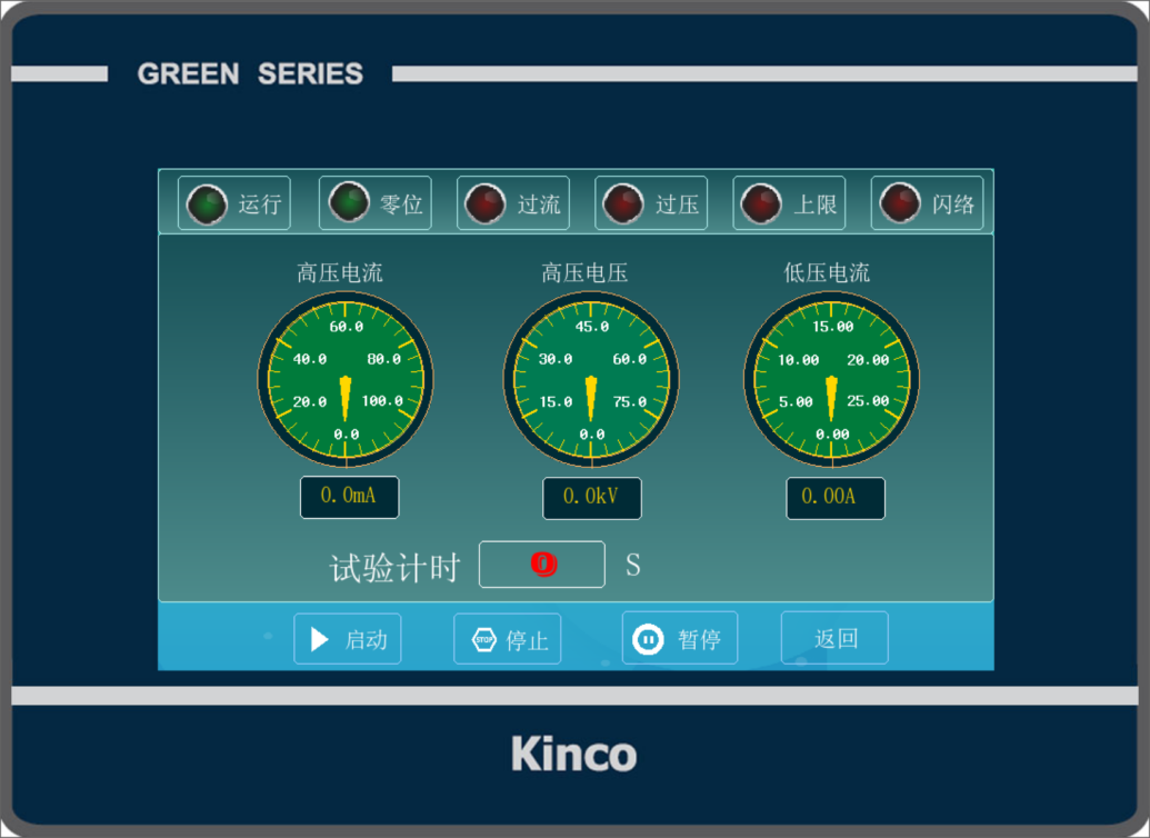 試驗(yàn)狀態(tài):高壓擊穿設(shè)備安全說明,軟件里實(shí)時(shí)顯示當(dāng)前試驗(yàn)狀態(tài),如:試驗(yàn)門是否關(guān)閉,升壓指示、歸零復(fù)位指示等。