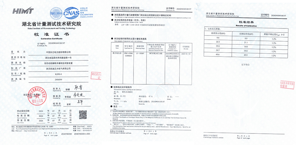 中國長江電力股份有限公司采購的我司KDJS-8全自動絕緣靴手套耐壓試驗裝置,在經(jīng)過湖北省計量測試技術(shù)研究院的嚴格檢測后,成功通過了參照JJF(浙)1144-2018《交流高壓試驗裝置校準規(guī)范》的校準測試,標志著該設(shè)備在性能指標、安全標準及技術(shù)各方面均符合要求。這一校準不僅展示了凱迪正大電氣產(chǎn)品的品質(zhì),也突顯了凱迪正大電氣在設(shè)備研發(fā)生產(chǎn)方面的實力。KDJS-8全自動絕緣靴手套耐壓試驗裝置的主要特點: