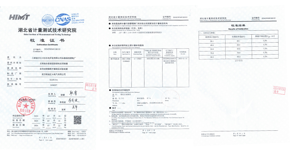 近日從湖北省計量測試技術(shù)研究院傳來喜訊,三峽金沙江川云水電開發(fā)有限公司位于云南省永善縣的溪洛渡電廠,所購置的我司KDJS-8A全自動絕緣靴手套耐壓試驗裝置,已成功通過該研究院的檢測與校準(zhǔn)。