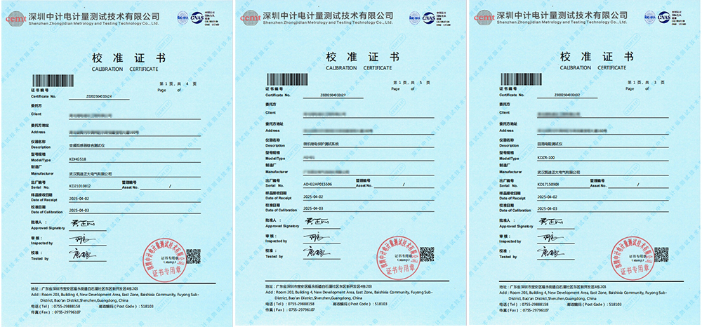 近日,湖北某電建設(shè)工程有限公批量采購武漢凱迪正大的近二十余套電力設(shè)備已經(jīng)全部順利通過深圳中計(jì)電計(jì)量測試技術(shù)有限公司的專業(yè)校準(zhǔn),并成功獲得了校準(zhǔn)證書。這一消息不僅彰顯了湖北某電建公司對(duì)武漢凱迪正大品牌的深度信任,也再次證明了武漢凱迪正大在電力設(shè)備制造領(lǐng)域的品質(zhì)與可靠實(shí)力。