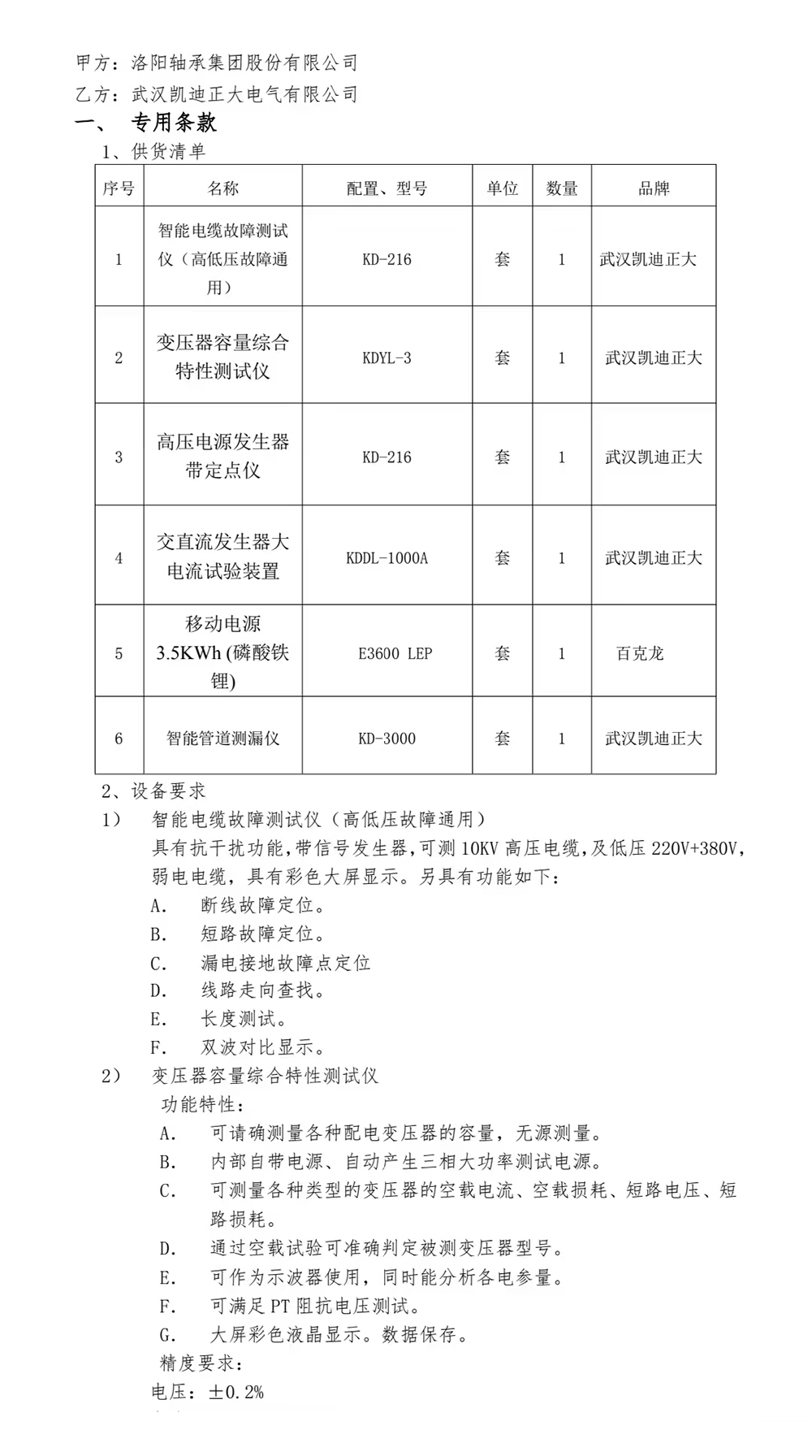 近日,洛陽(yáng)軸承集團(tuán)股份有限公司選擇與武漢凱迪正大電氣有限公司合作,批量采購(gòu)了一系列電氣測(cè)試設(shè)備。此次采購(gòu)的設(shè)備涵蓋了KD-216智能電纜故障測(cè)試儀、KDYL-3變壓器容量綜合特性測(cè)試儀、KD-216高壓電源發(fā)生器、KDDL-1000A交直流大電流試驗(yàn)裝置以及KD-3000智能管道測(cè)漏儀。