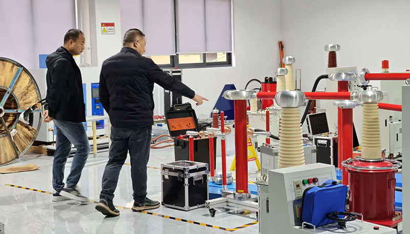隨后,客戶一行來到高壓試驗(yàn)室,親眼目睹了多臺高壓測試設(shè)備的試運(yùn)行場景,包括沖擊電壓發(fā)生器、串聯(lián)諧振系統(tǒng)等大型試驗(yàn)設(shè)備。技術(shù)人員現(xiàn)場重點(diǎn)演示了無局放試驗(yàn)裝置操作流程,并詳細(xì)解答了客戶關(guān)于設(shè)備技術(shù)參數(shù)、應(yīng)用范圍等方面的詢問。