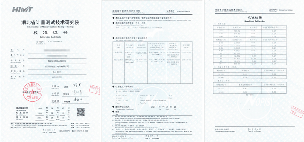 獲得省計(jì)量院校準(zhǔn)證書—KD-2190智能電纜綜合探測(cè)儀,賦能管線運(yùn)維全場(chǎng)景